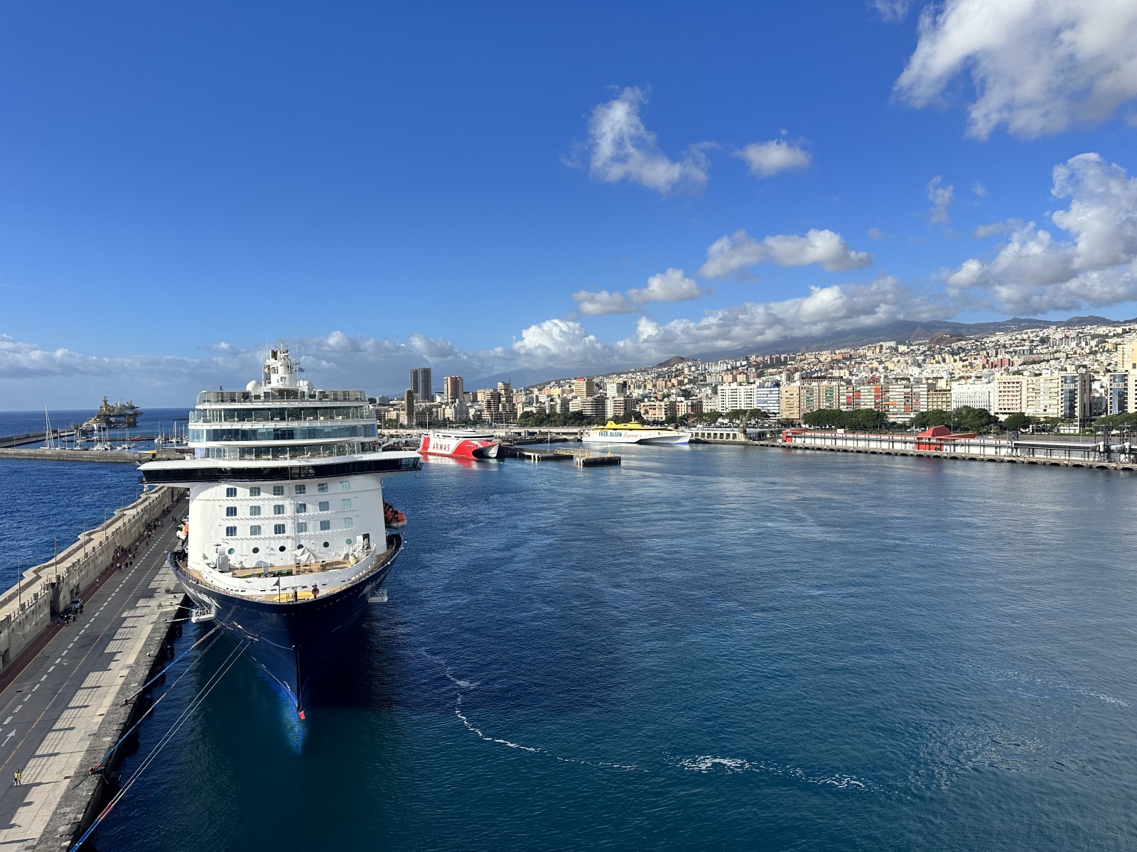 We are now in Tenerife and the wind has died with a calm sea. We have five sea days before we get to Bermuda where we have a beach day and sunset rum cruise scheduled which we are looking forward too.